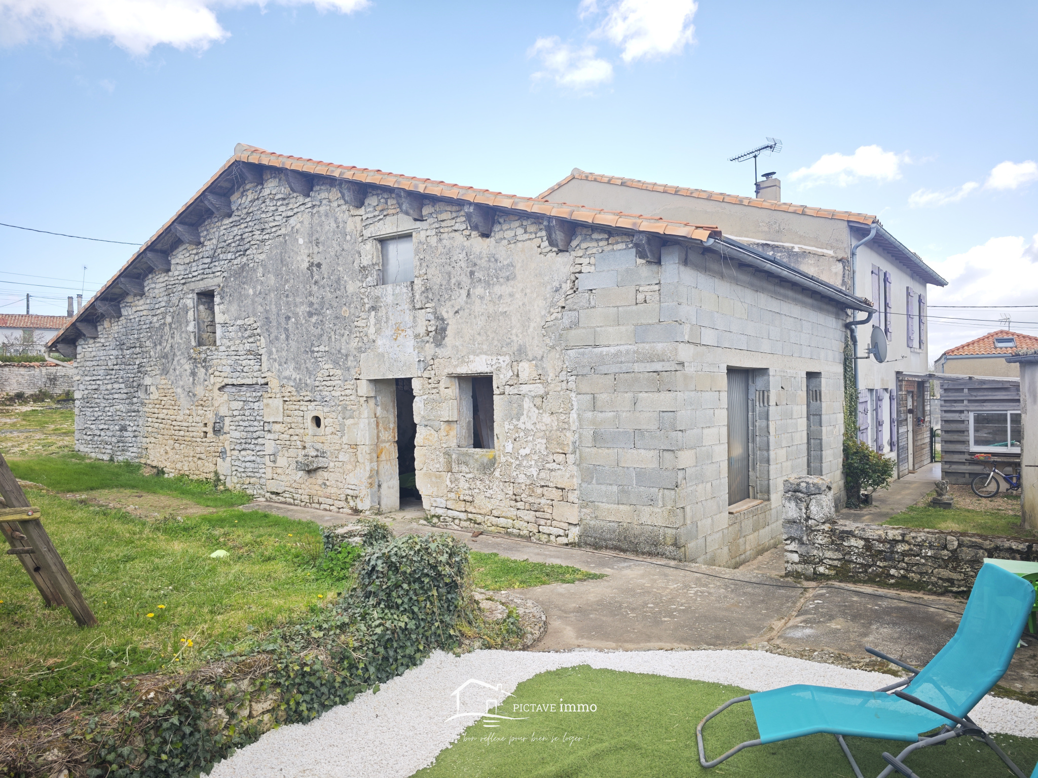 CHEF-BOUTONNE. PICTAVE immo, votre agence immobilière à LEZAY, vous présente en EXCLUSIVITÉ cette maison. Si vous avez besoin de dépendances pour stationner des véhicules, pour stocker ou bien selon vos projets, venez visiter cette maison ! Elle dispose d'une cuisine aménagée avec un espace repas, un séjour avec une cheminée et un accès à une terrasse couverte. À l'étage, un palier desservant trois chambres, dont une avec un dressing, une salle d'eau et un WC. Ce bien comprend de nombreuses dépendances. Certaines attenantes à la maison, d'autres fermés vous aurez la possibilité d'avoir un atelier et des garages. POINTS FORTS: PANNEAUX PHOTOVOLTAÏQUES (76m²), CHAUFFE-EAU THERMODYNAMIQUE et ASSAINISSEMENT CONFORME. Un jardin en partie clos. A quelques minutes du centre bourg, où se tient le marché du samedi matin et où se trouvent de nombreux commerces et services de proximité : maison de la presse, bar-restaurant, boulangeries, boucherie-charcuterie, supermarché, fleuriste, médecins, pharmacies, ainsi que les écoles de la maternelle au lycée.