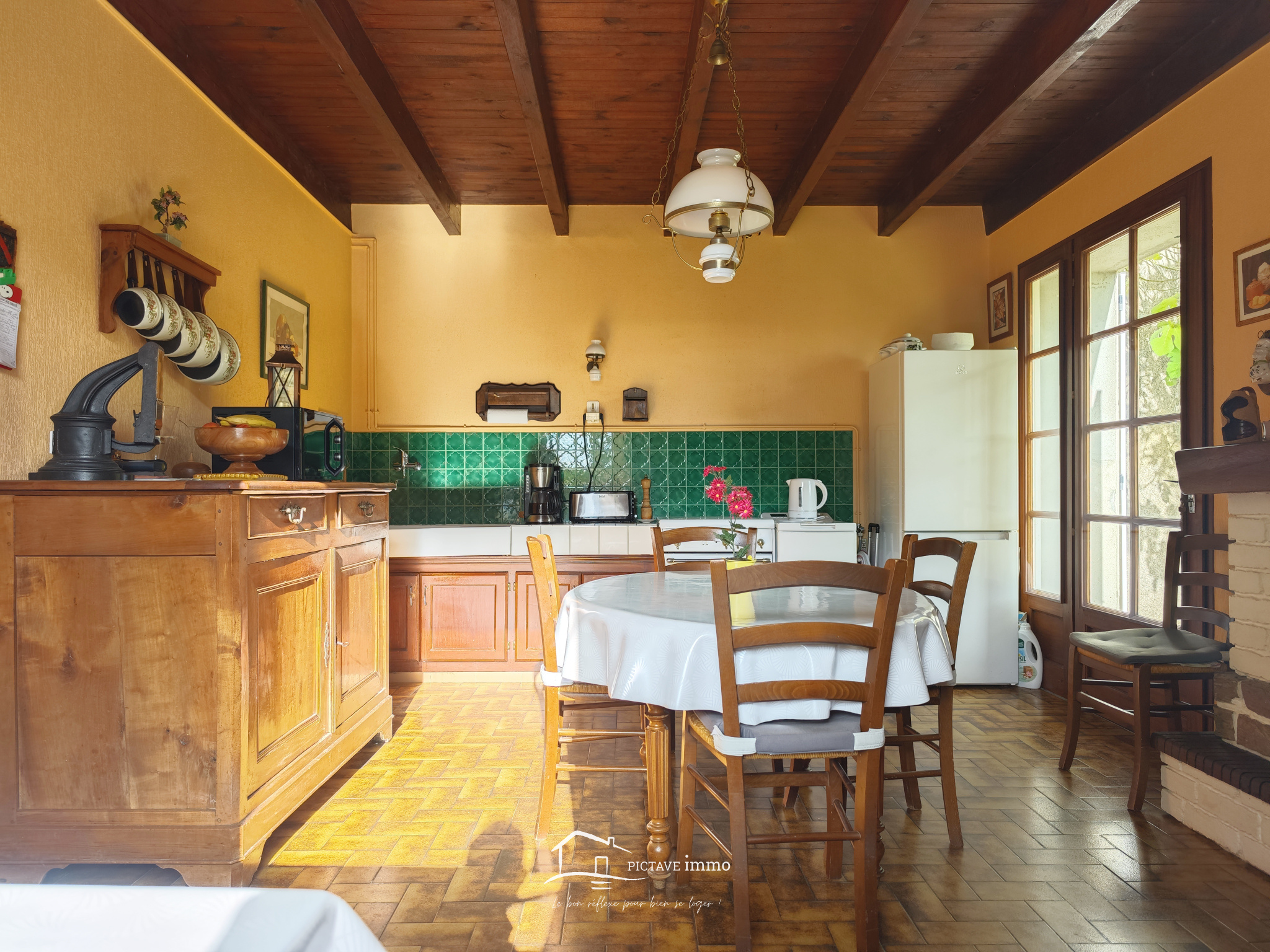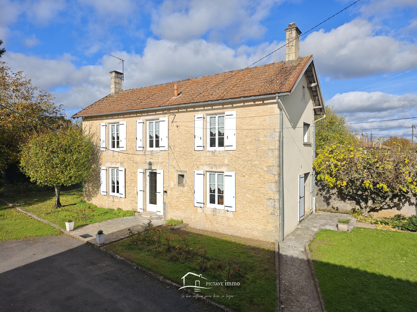 ROM. PICTAVE immo votre agence immobilière à LEZAY, est heureuse de vous proposer en EXCLUSIVITÉ cette maison construite en 1920. Elle se compose d’une entrée, d’une cuisine donnant accès à une terrasse, d’un séjour avec cheminée, d’une salle de bains et d’un WC. À l’étage, vous trouverez trois chambres, dont une de 25 m². Un studio indépendant, une grange aménageable selon vos projets ainsi qu’un garage complètent cet ensemble. Parmi les équipements récents, la maison dispose de menuiseries PVC à double vitrage. Le jardin, planté de nombreux arbres — dont un superbe tilleul, un figuier, un marronnier, un noyer et plusieurs conifères — offre un cadre naturel, verdoyant et paisible. Située dans un hameau entre VALENCE-EN-POITOU/COUHÉ (à seulement 7 minutes) et ROM, cette propriété profite d’un accès rapide aux commodités du bourg : musée, école et commerce multiservices (bar, restaurant, épicerie).