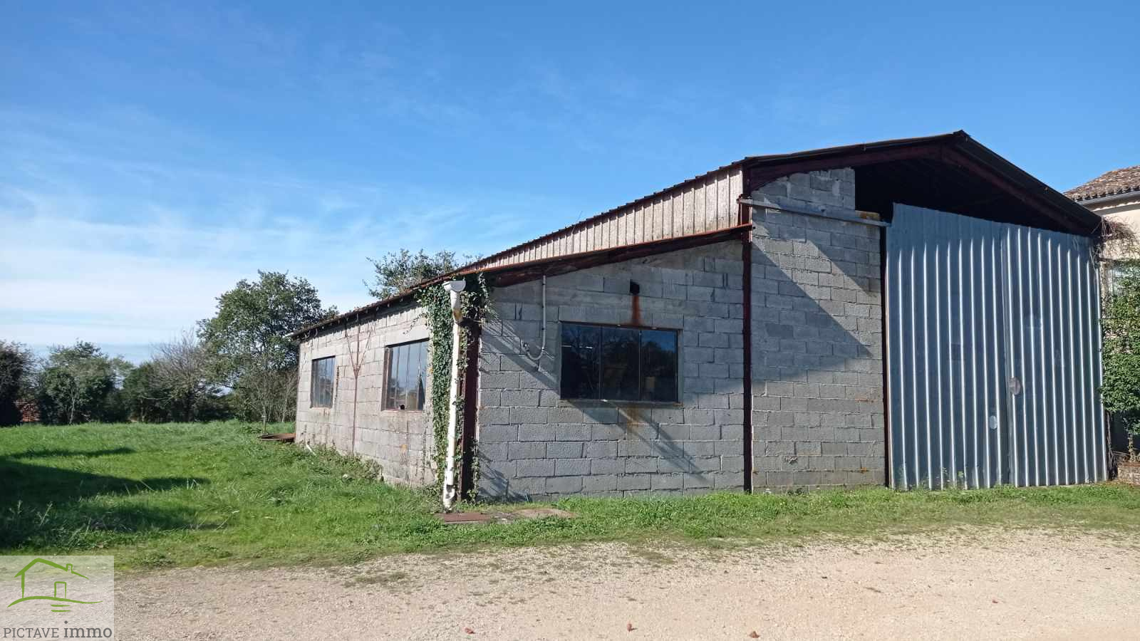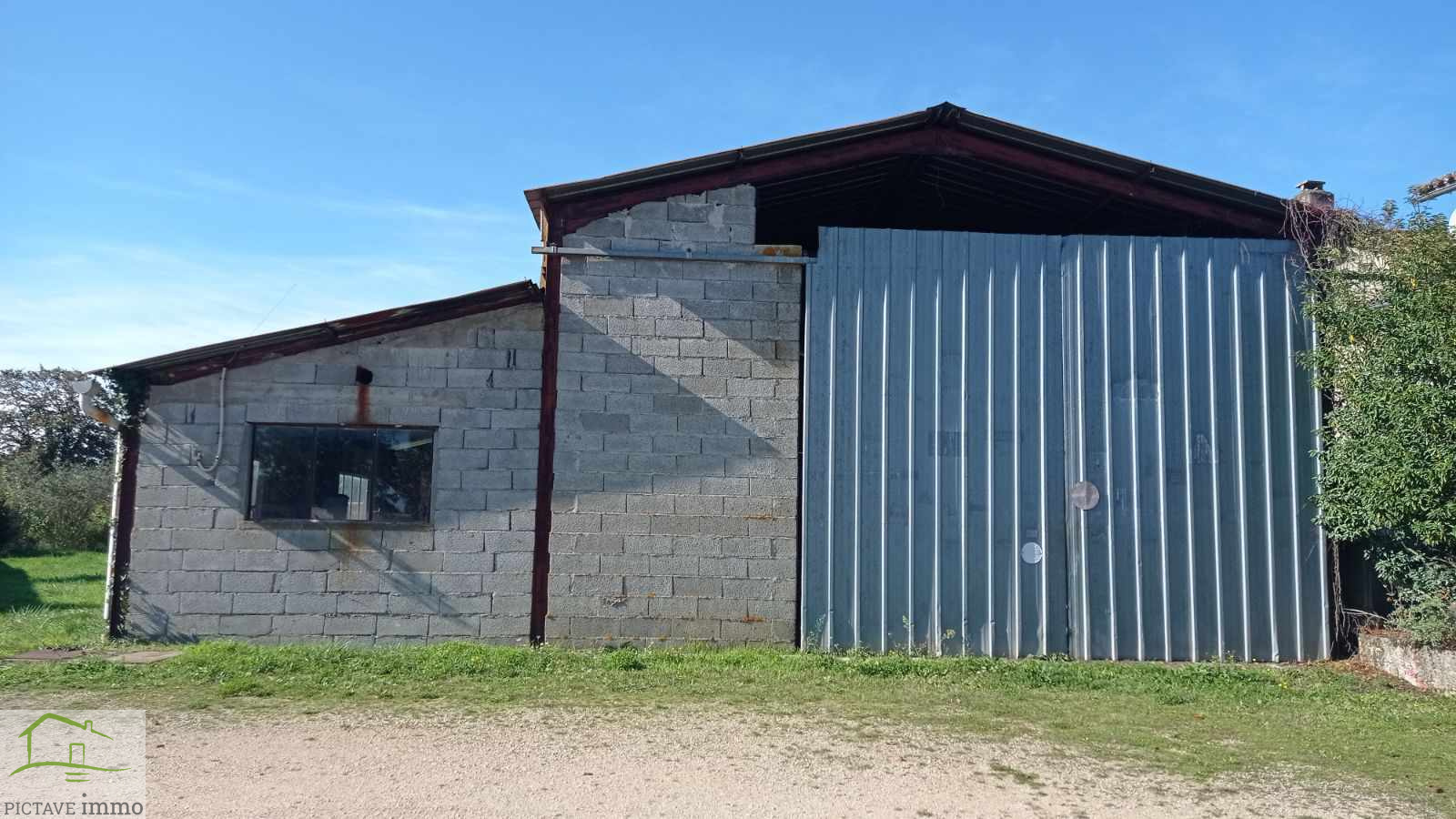 Edifié sur une parcelle constructible de 1511 m2, vous pouvez imaginer de transformer le hangar en habitation ou de construire votre maison sur le terrain en retrait de la route.