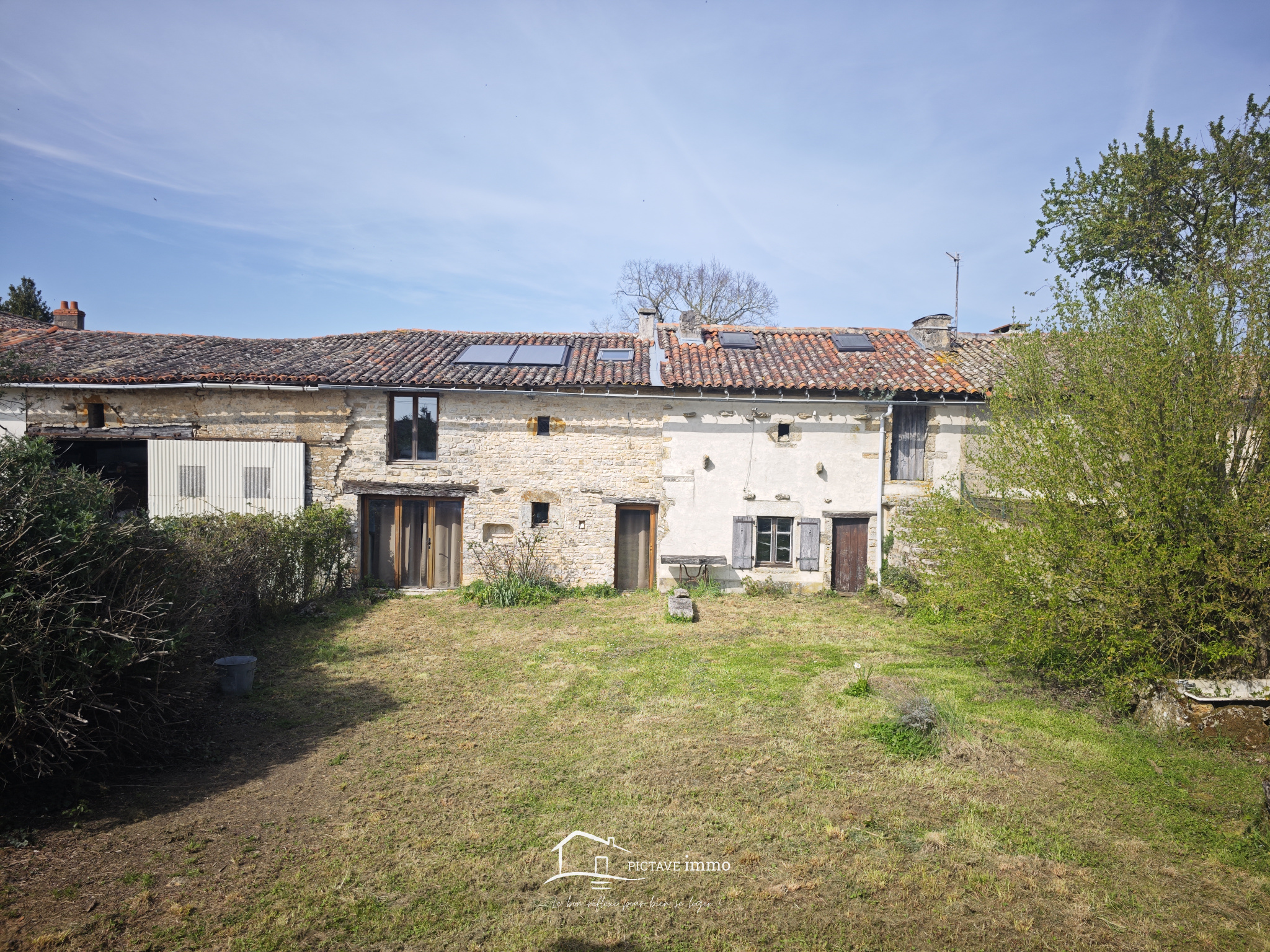 MESSE. PICTAVE immo votre agence immobilière à LEZAY, a le plaisir de vous présenter cette maison. Elle offre au rez-de-chaussée une belle pièce de vie avec espace cuisine, ainsi qu'une salle de bains équipée de toilettes sèches. À l'étage, un agréable palier dessert deux chambres. Un espace attenant de 40 m², avec un étage aménageable selon vos envies, vient compléter l’ensemble. La rénovation déjà entamée a été réalisée dans une démarche écoresponsable. La propriété dispose également de plusieurs dépendances, dont une magnifique grange de 55 m². Le tout est implanté sur une parcelle clôturée de 720 m², avec un jardin verdoyant et un puits. Située dans un hameau paisible, la maison se trouve à seulement 10 minutes de Valence-en-Poitou et à 40 minutes de Poitiers.