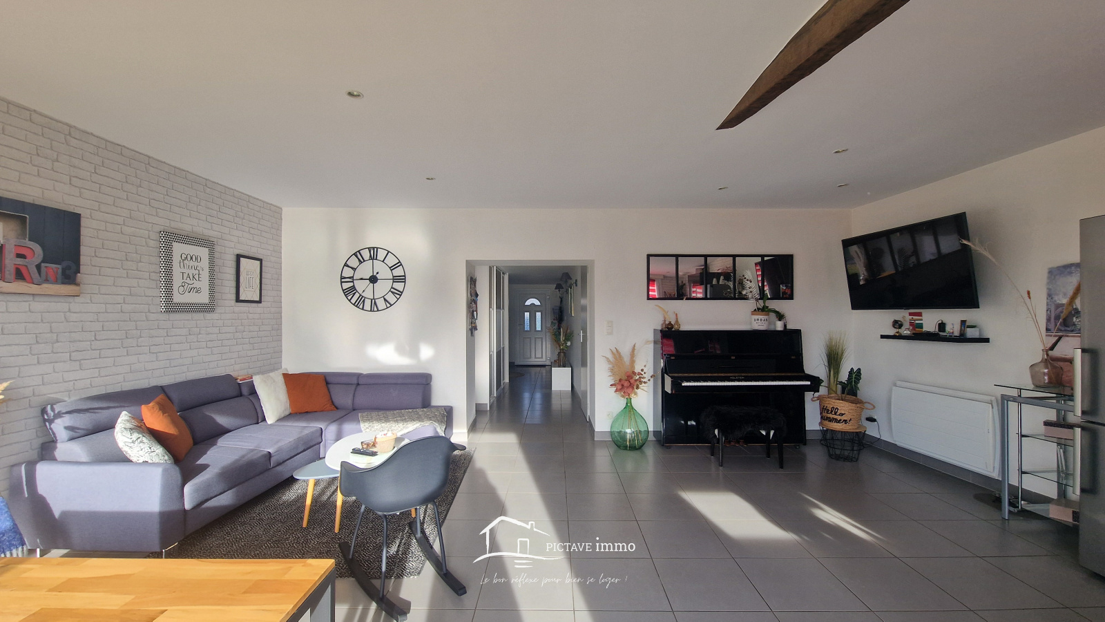 Dès l’entrée, vous serez séduit par une belle pièce de vie lumineuse avec une cuisine aménagée et équipée, ouverte pour plus de convivialité, ainsi qu’un WC indépendant au rez-de-chaussée.