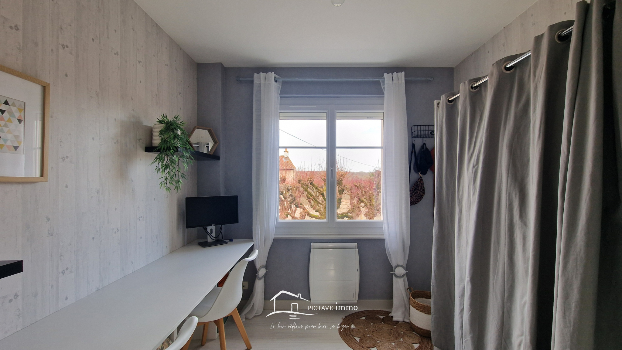 À l’étage, l’espace nuit se compose de deux chambres agréables, d’un bureau parfait pour le télétravail ou une chambre d’appoint, et d’une salle d’eau avec WC.