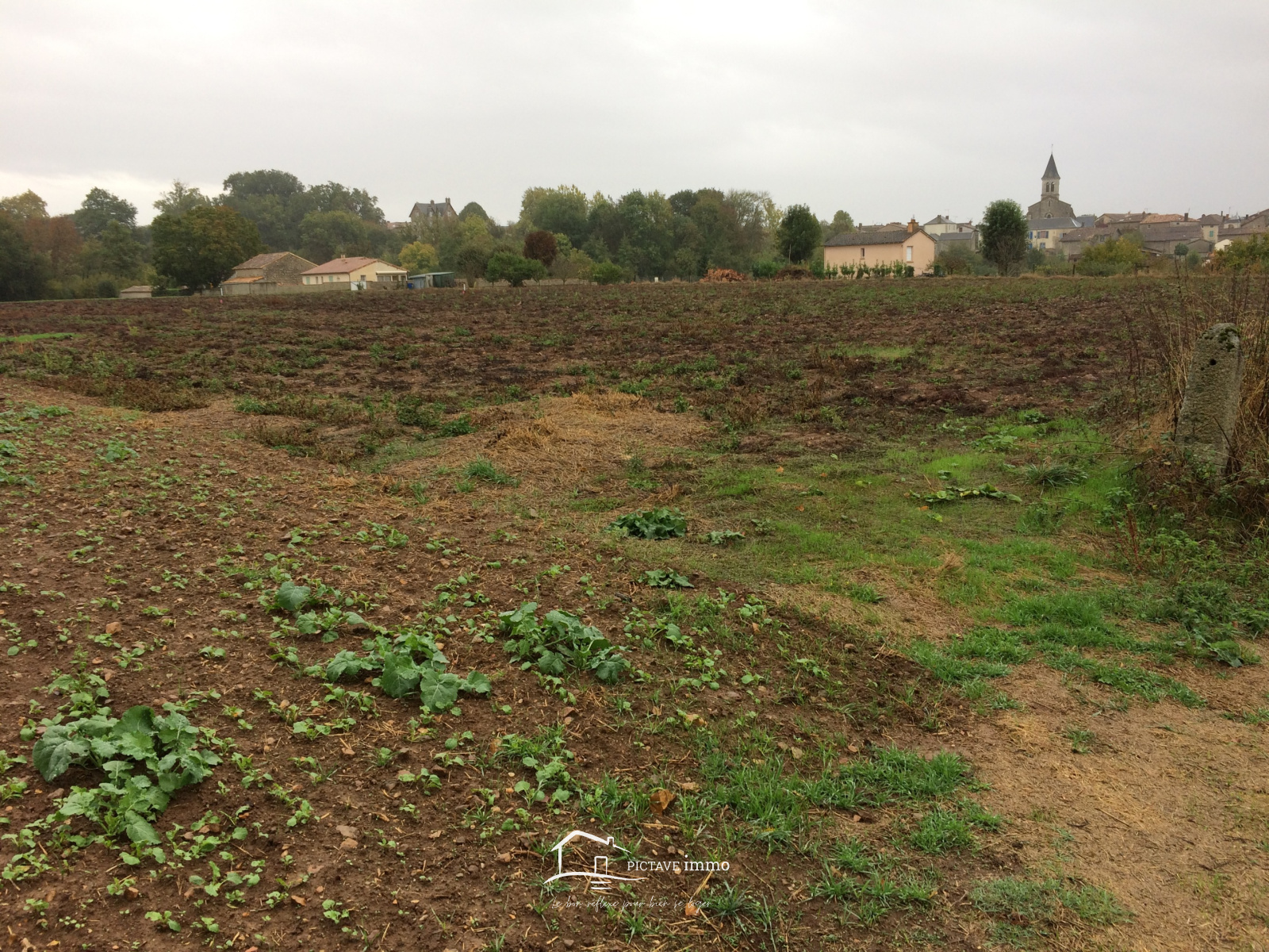 PICTAVE immo, votre agence immobilière à LUSIGNAN, vous propose ce terrain constructible d'une superficie cadastrale de 1633m², façade de 27m.